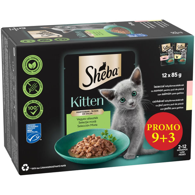 Carne si derivate de origine animala* (94% natural), peste si derivate din peste* (inclusiv somon 4% in fiecare bucatica**), derivate de origine vegetala, minerale, diverse zaharuri. *Natural. **Bucatele 49% din produs.Compozitie: carne si derivate de origine animala* (inclusiv pui 4% in fiecare bucatica**), derivate de origine vegetala, minerale, diverse zaharuri. *94% natural. **Bucatele 49% din produs.