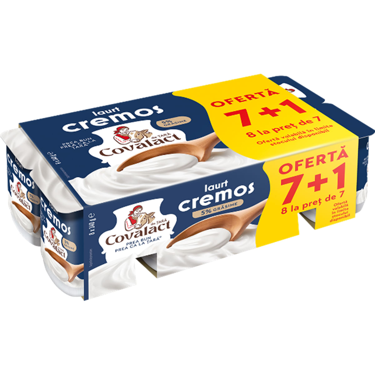 Iaurt cremos Covalact, 5% grasime, 7 + 1 x 140 g - Comanda online acum