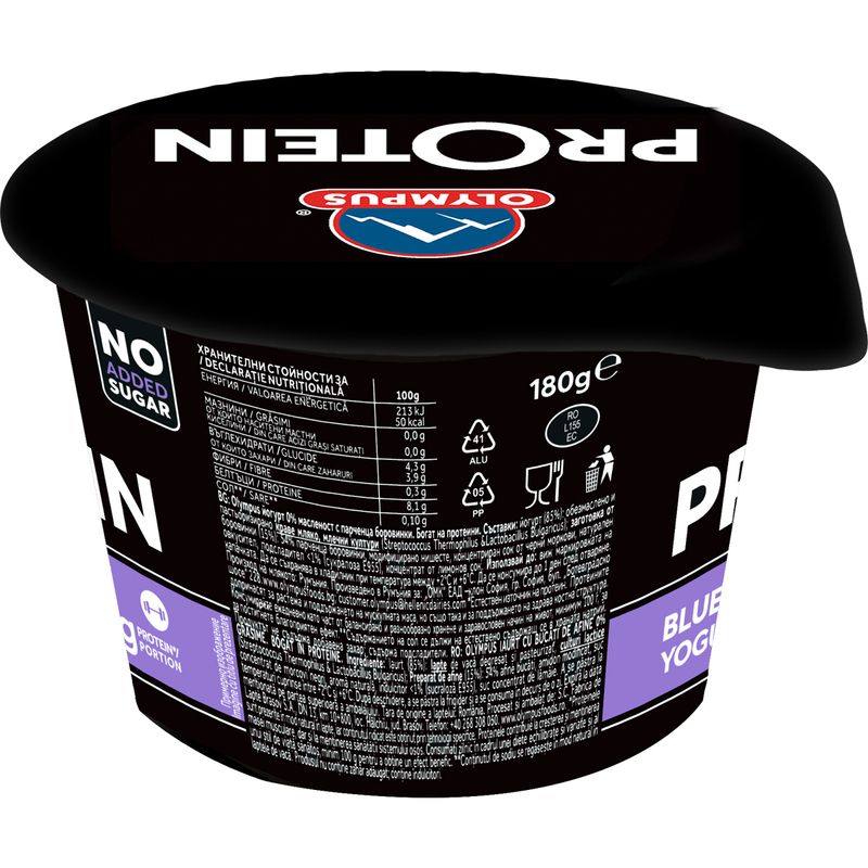 Iaurt proteic cu afine Olympus High Protein, 0% grasime, 180 g Iaurt proteic cu afine Olympus High Protein, 0% grasime, 180 g