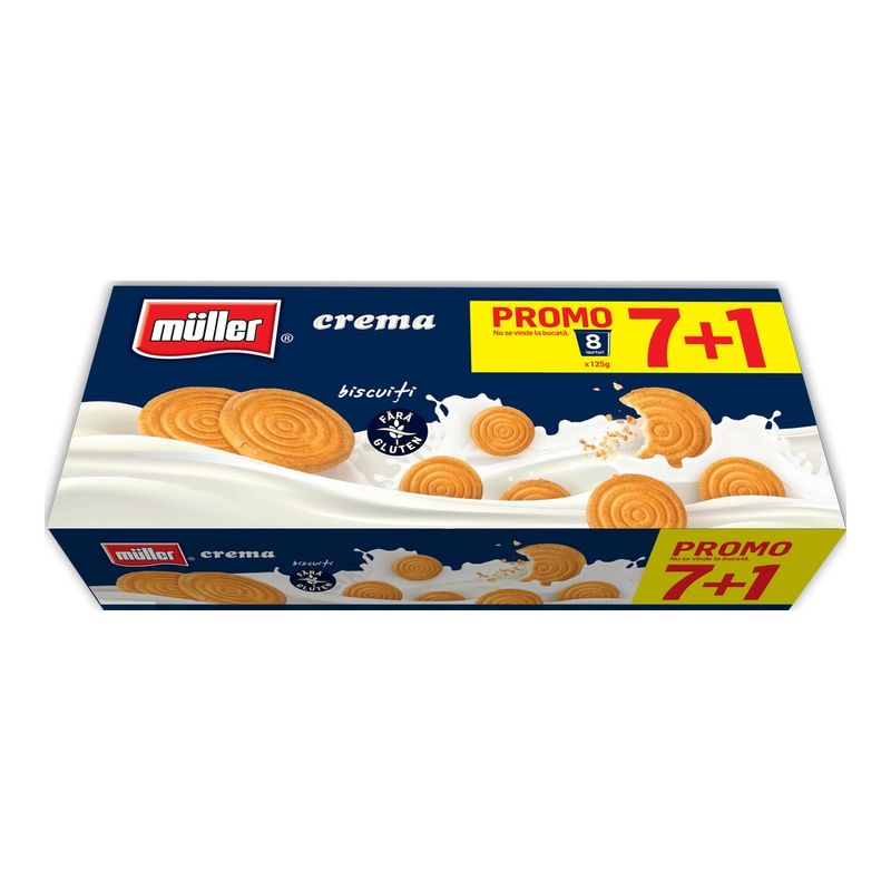 Iaurt cu biscuiti Muller, fara gluten, 7 + 1 x 125 g - Comanda online acum