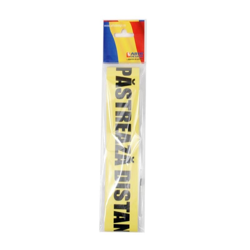 Indicator podea - autocolant printat laminat - Pastreaza Distanta dimensiune 50 x 5 cm - culoare galben si negru.
