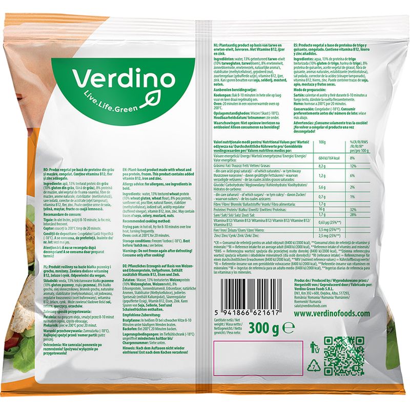 CongelateSemipreparate sarateMancaruri semipreparateInlocuitor vegetal pentru file de pui Verdino, 300 g