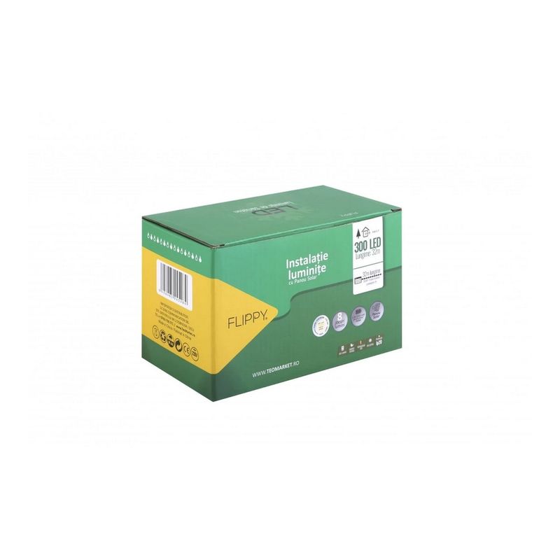 Instalatie de Craciun Flippy, solara, 300 led, 32 m, alb cald Instalatie de Craciun Flippy, solara, 300 led, 32 m, alb cald