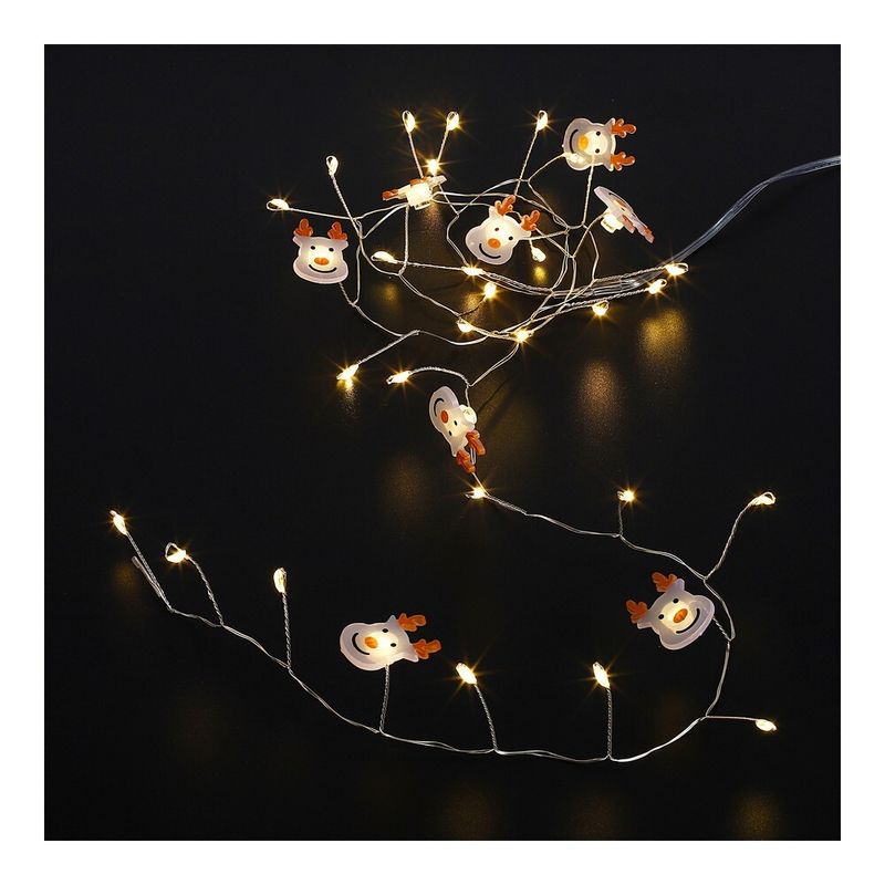 Ghirlanda fantezie de Craciun 35 LED-uri alb cald cu lungimea de 100cm. Aprinde-ti bradul de Craciun cu aceasta frumoasa ghirlanda de lumina! Numai pentru utilizare in interior. Functioneaza cu 2 baterii AA (nu sunt incluse).