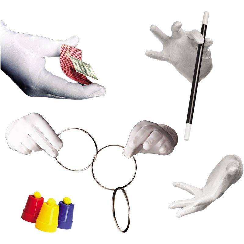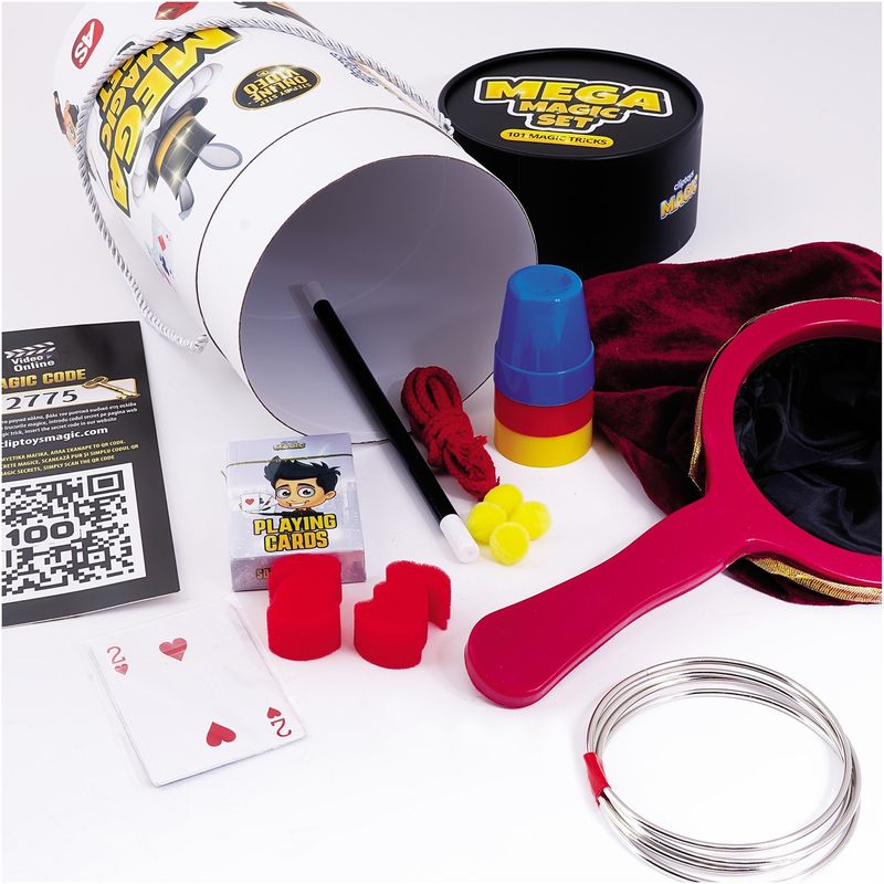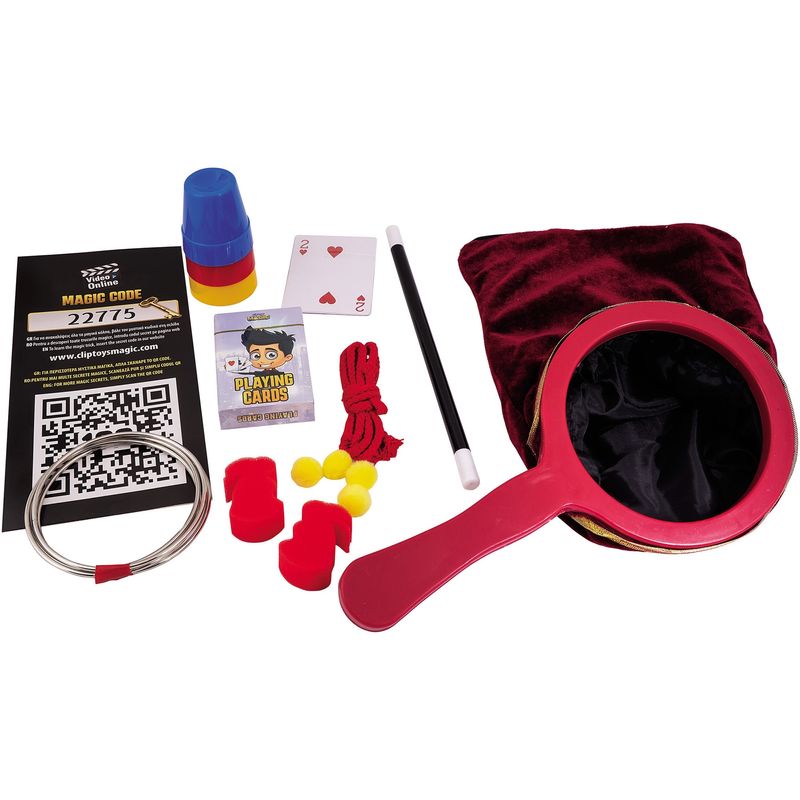 Pregateste-te pentru o calatorie incredibila in lumea magiei si a iluziilor, combinand trucuri clasice si moderne. In interior vei gasi o bagheta magica plutitoare, punga magica misterioasa care face obiectele sa dispara, un iepure care dispare si reapare, trucul clasic cu inelele care se conecteaza si se separa miraculos, o bancnota care leviteaza in aer, trucuri uimitoare cu franghii, trucul atemporal cu paharele si bilele si trucuri incredibile cu carti de joc.