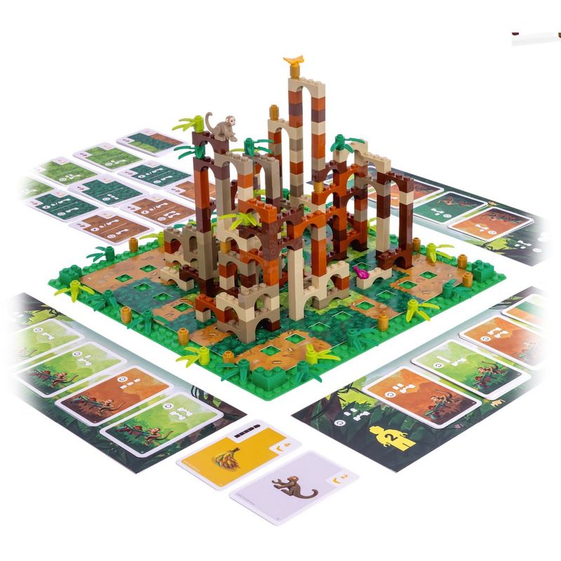 Continut: 1 plansa LEGO 32x32, 231 caramizi LEGO, 67 carti Maimuta, 14 carti Bonus, 3 carti Trofeu, 4 table de joc, 2 harti de teren cu harti pe ambele parti, 1 tavita pentru caramizi, 1 regulament.