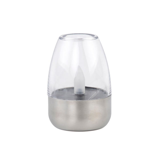 Lumanare decorativa solara de masa, cu efect de flacara si LED galben. Dimensiuni aprox. diametru 6 × 10 cm.