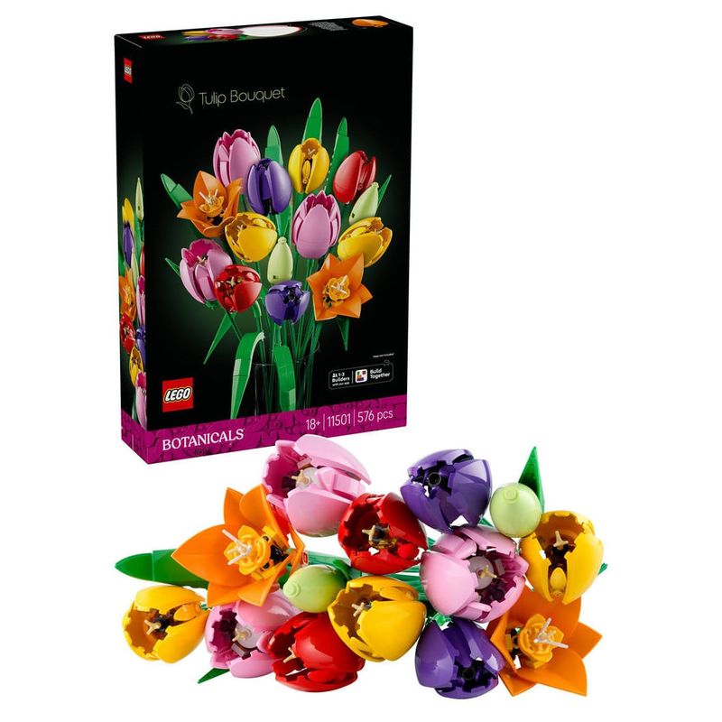 Simte cum creativitatea infloreste pe cand creezi un buchet colorat de lalele LEGO®. Construieste fiecare floare si admira-i detaliile si culorile autentice. Vei descoperi boboci in verde-intens, lalele inchise violet si lalele deschise rosii, galbene si roz, precum si frunze verzi si tulpini ajustabile pentru personalizare. Dupa ce ai terminat de construit, etaleaza buchetul ca decoratiune florala.