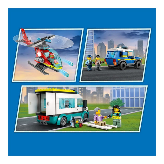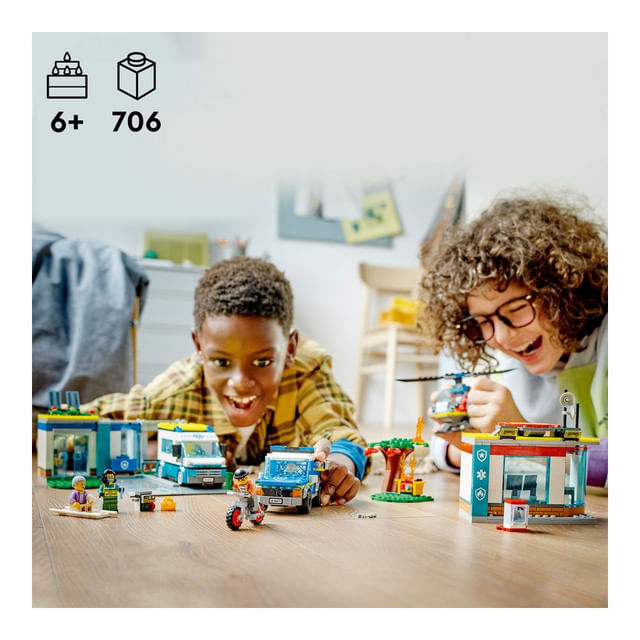 Copiii se pot alatura serviciilor de salvare ale politiei, ambulantei sau pompierilor cu acest set combinat LEGO City Centru pentru vehicule de urgenta (60371). Cladirea pe 2 niveluri e plina cu dotari pentru joaca fantezista si e insotita de un elicopter de pompieri, o ambulanta, un SUV de politie si o motocicleta a infractorului. Adauga cele 5 minifigurine si lasa joaca sa inceapa.