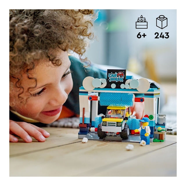 Curatarea masinilor este o joaca de copii cu setul 6+ LEGO City Spalatorie de masini (60362), care include perii rotative de spalare, ventilatoare mobile de uscare, un dozator de spuma de sapun, o pompa pentru cauciucuri si o masina de jucarie. Nu trebuie decat sa mai adaugi minifigurinele sofer si angajat si un strop de imaginatie pentru multe ore de distractie.