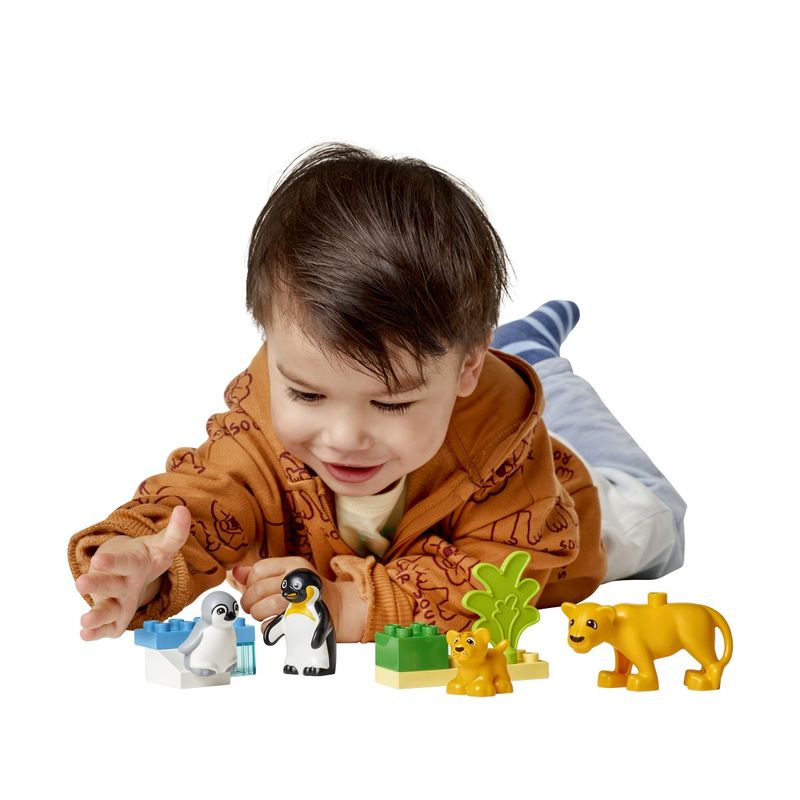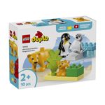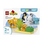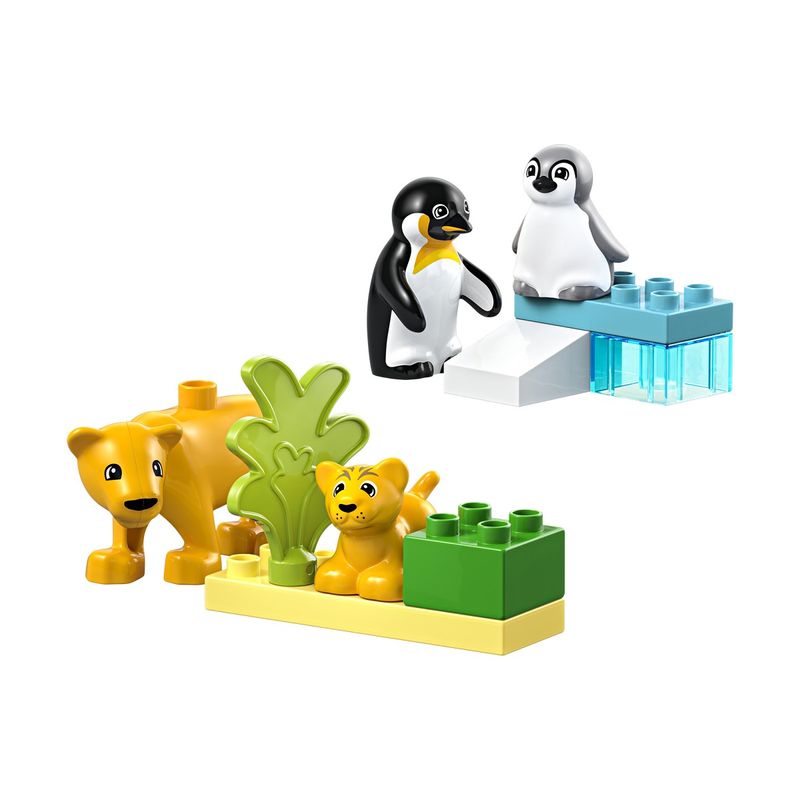 • Pinguini si lei de jucarie pentru copii – Aceasta jucarie pentru joaca pe roluri contine 2 habitate construite din caramizi si 4 figurine animale LEGO® DUPLO®: un pinguin adult cu un pui si o leoaica cu puiul ei;