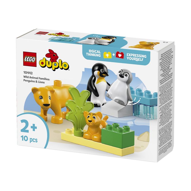 Porneste intr-o calatorie de invatare prin distractie alaturi de micutii de 2 ani si mai mari, in care ii porti din Antarctica pana in Africa cu aceasta simpatica jucarie de constructie pe tema naturii. Jucaria pentru imaginatie Familii de animale salbatice: Pinguini si lei (10442) contine 2 pinguini si 2 lei LEGO® DUPLO®, care sa inspire jocuri distractive pentru copii mici si ore intregi de joaca creativa.