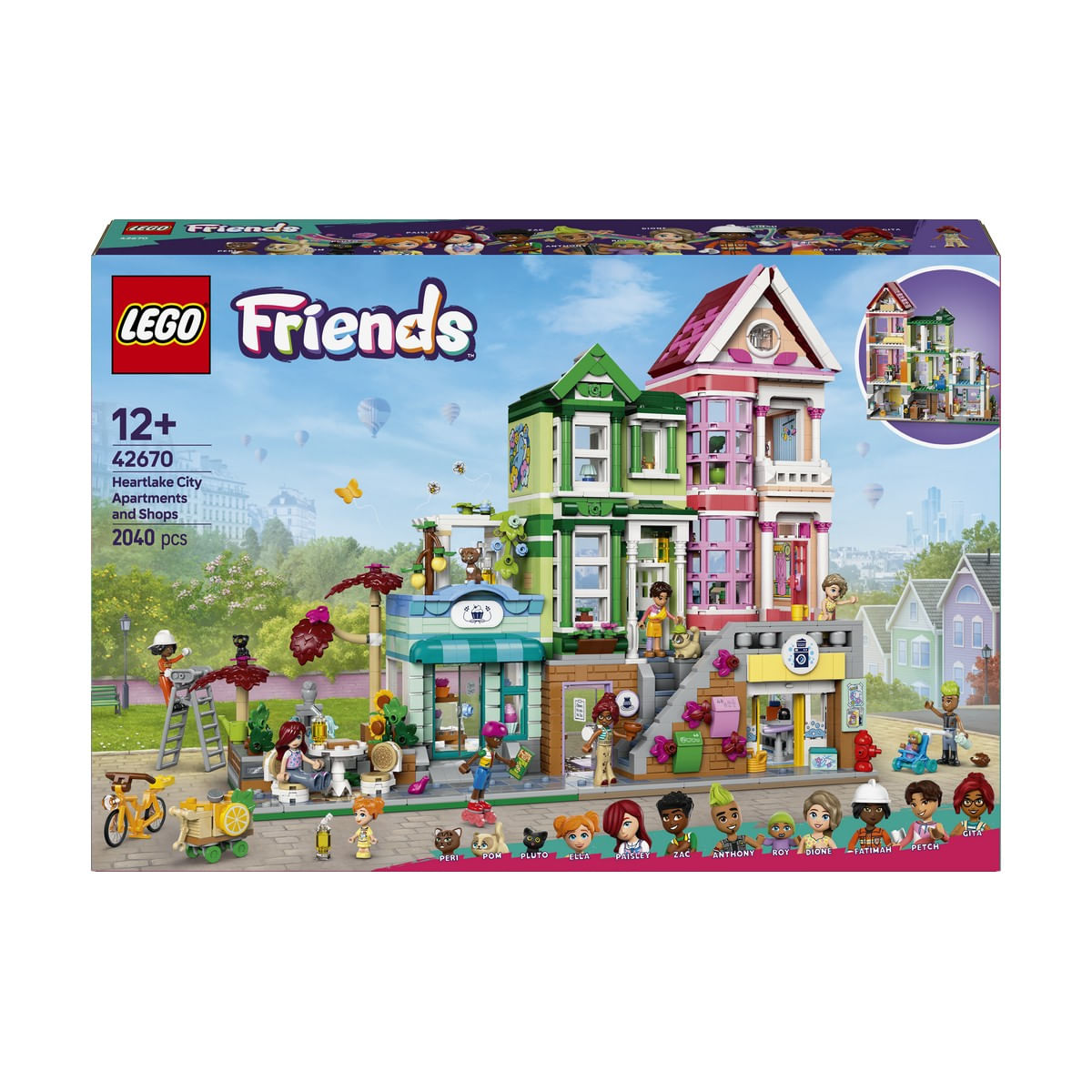 Descopera un model plin de spirit comunitar cu jucaria construibila LEGO® Friends Apartamente si magazine in orasul Heartlake (42670). Acest set este un cadou grozav pentru copiii de 12 ani si mai mari si include 3 case LEGO colorate, o brutarie, un studio de ceramica, o spalatorie si multe altele. Setul are o multime de detalii si povesti distractive de descoperit, plus 9 personaje, incluzand 7 minipapusi, si 3 figurine pisici.