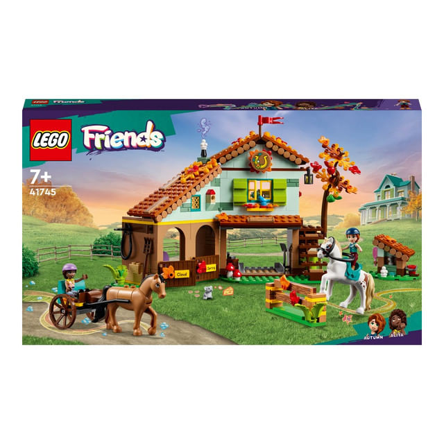 Ofera o bucurie micilor iubitori de cai de 7 ani si mai mari cu jucaria de constructie LEGO Friends Grajdul pentru cai al lui Autumn (41745). Setul include minipapusile Autumn si Aliya, plus 2 personaje cal si accesorii pentru joaca creativa. Copiii pot avea grija de cai si-i pot inhama la trasura pentru a porni la plimbare. De asemenea, se pot bucura de o mai buna cunoastere a personajelor. Autumn si Aliya au personalitati foarte diferite, dar sunt cele mai bune prietene. Iubesc sa-si petreacatimpul intr-un mod linistit si adora sa aiba parte de aventuri in egala masura. Deasupra grajdului se afla o bucatarie primitoare si o zona de dormit cu paturi de fan. E cadrul de vis pentru orice iubitor de cai!