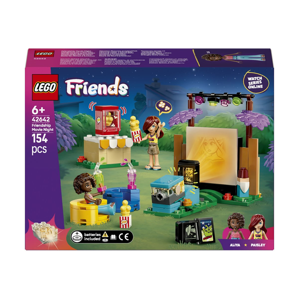 Acest cadou captivant pentru copii aduce magia unei seri de film! Fetele, baietii si micii cinefili de 6 ani si mai mari isi pot crea propriile povesti blockbuster cu jucaria pentru joaca fantezista LEGO® Friends Seara de film a prieteniei (42642). Setul atractiv include 2 minipapusi LEGO Friends si o multime de accesorii pentru joaca creativa. „Lumini, camera, prietenie!”! Copiii au ocazia sa spuna povestea prietenelor Paisley si Aliya care se bucura de o seara de film in gradina lui Paisley. Introdu un diapozitiv de film in proiector si apasa caramida luminoasa pentru a face imaginea sa apara pe ecranul mare. Descopera o multime de accesorii, intre care un aparat de popcorn cu un maner pentru a face floricelele sa sara! Alte accesorii includ o cutie pentru popcorn, bauturi, o carte de benzi desenate si 2 fotolii confortabile. Descopera mai multe jucarii si cadouri amuzante (vandute separat) din universul LEGO Friends. Aceasta jucarie pentru joaca pe roluri este insotita de aplicatia LEGO Builder pentru o constructie intuitiva. In aplicatie, copiii pot apropia si roti modelele, salva seturi si monitoriza propriul progres pe masura ce construiesc.