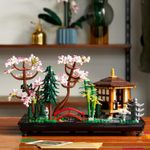 Bazat pe o gradina japoneza traditionala, acest model construibil include un pod arcuit, un parau, un crap koi, flori de lotus, copaci, pietre, felinare din piatra si un pavilion cu o camera detaliata pentru ceremonia ceaiului.