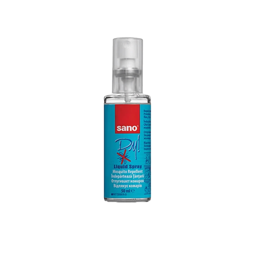 Eficient pentru mai multe ore, chiar si in conditii climatice severe. Usor de aplicat. Respinge insectele zburatoare inainte de a se aseza pe piele. Ideal pentru utilizarea in excursii. Disponibile cu miros de lavanda racoritoare. Sano Dy Liquid Spray, recipient de sticla cu pulverizator 50ml. Protectie de pana la 8 ore!