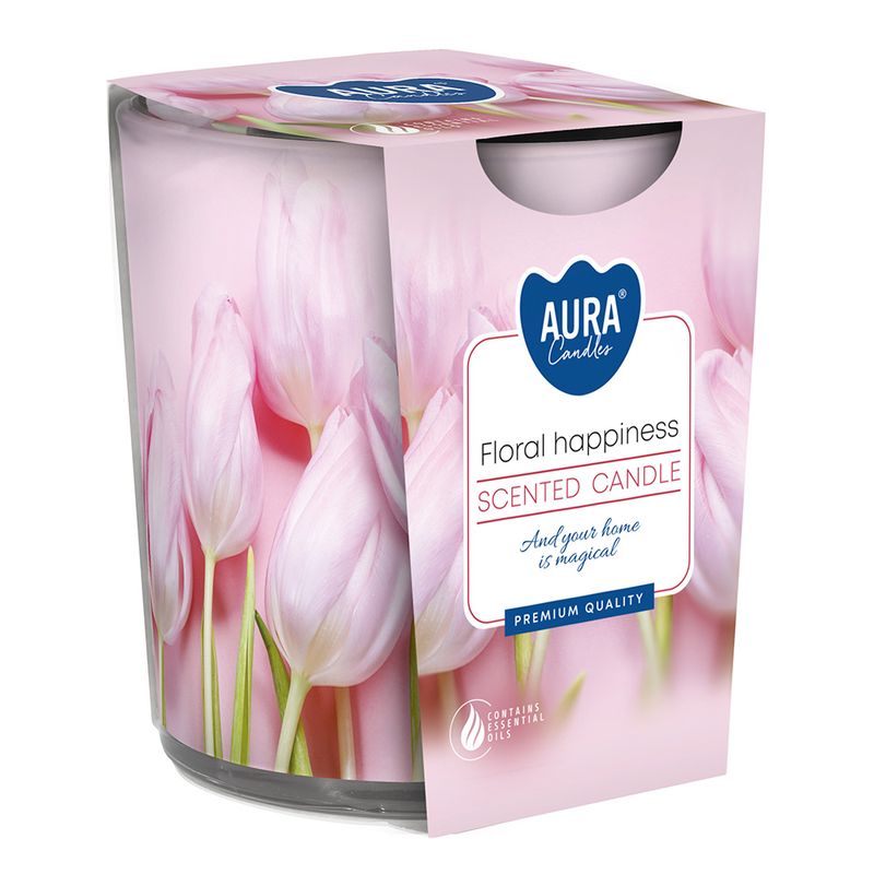 Lumanare parfumata in pahar Aura Floral Happiness, 22h - Comanda online acum