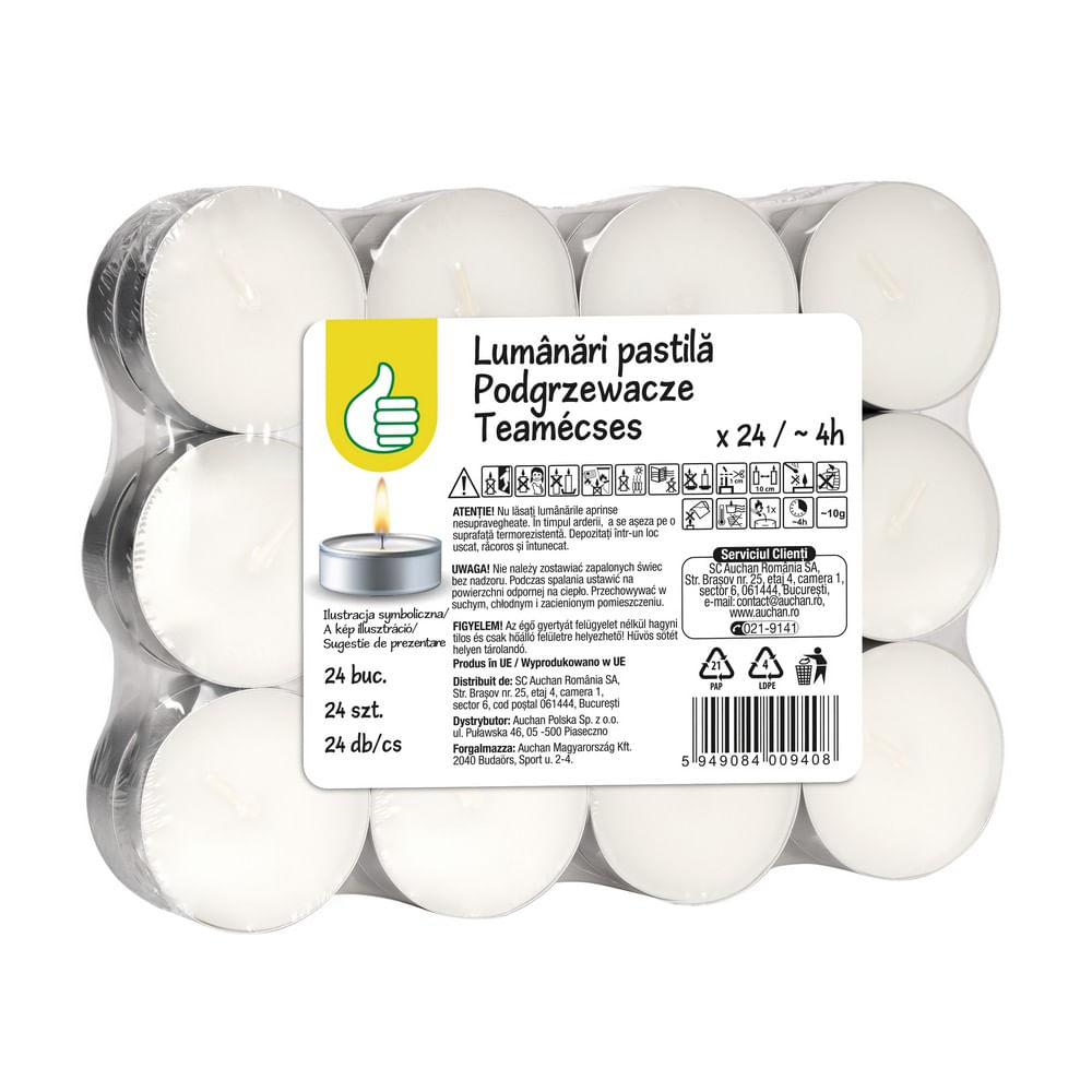 Lumanari tip pastila, timp de ardere 4 ore, eticheta decorativa.