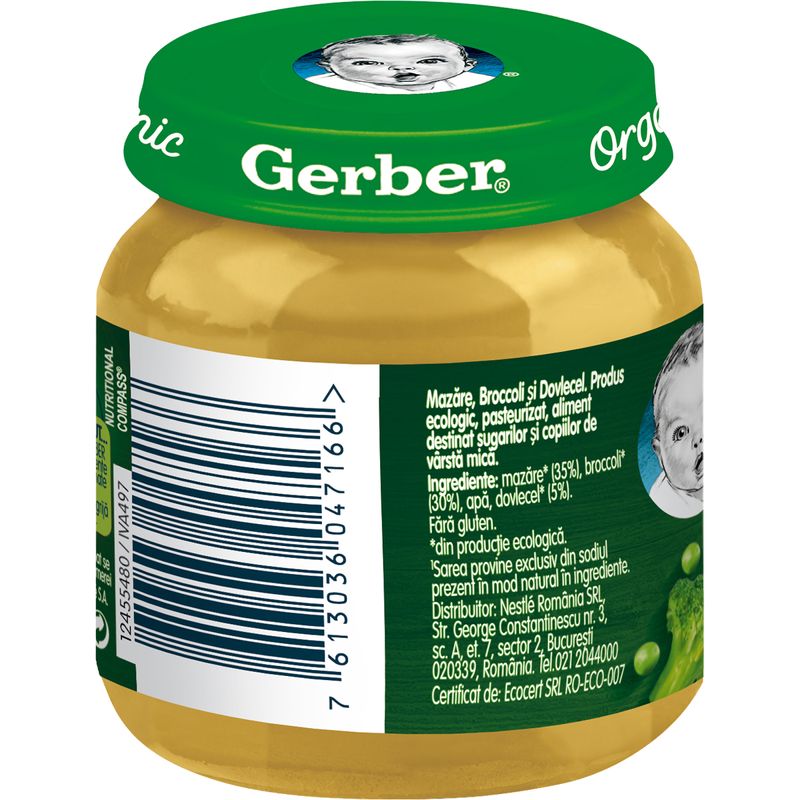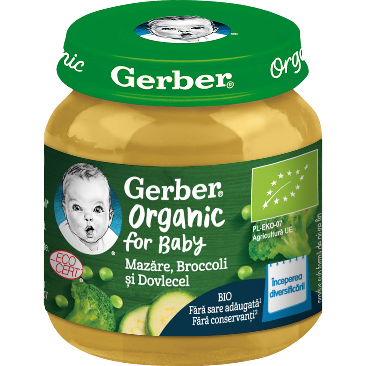 GERBER BIO Mazare, Broccoli si Dovlecel, piure bebelusi pentru inceperea diversificarii, de la 6 luni, 125g
