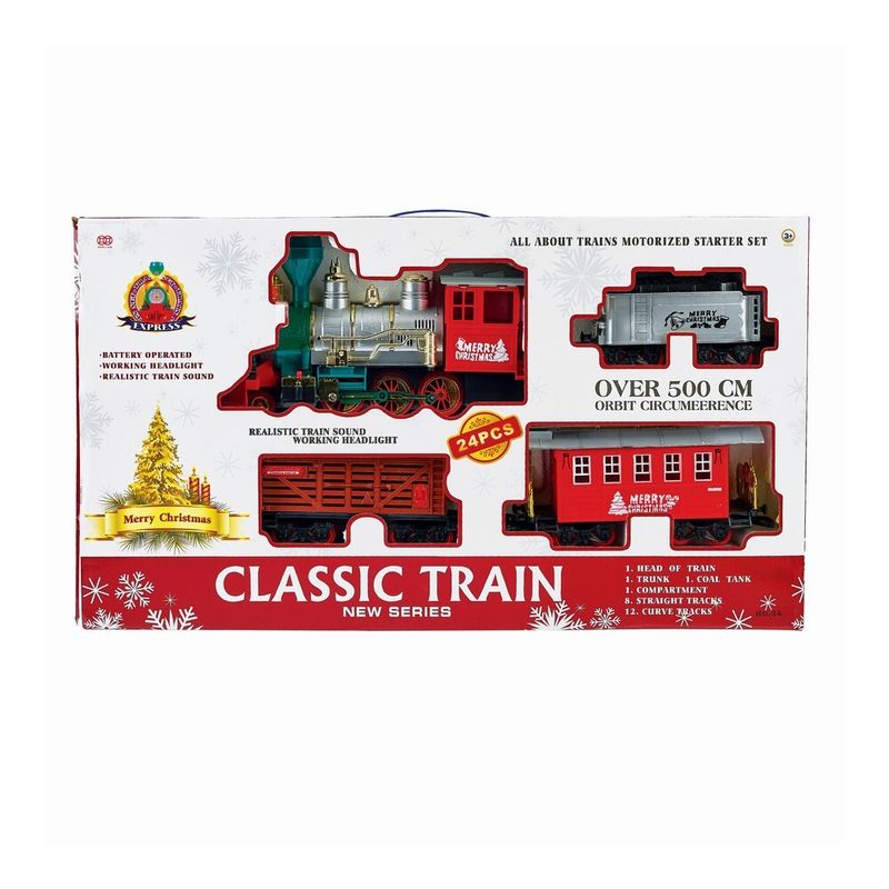 Dimensiunea ambalajului este de 71,1 x 13 x 40,9 cm, iar trenul necesita 6 baterii de tip AA (neincluse). Recomandat copiilor cu varsta de peste 4 ani, acest tren de Craciun este o alegere excelenta pentru distractie si momente de neuitat in familie!