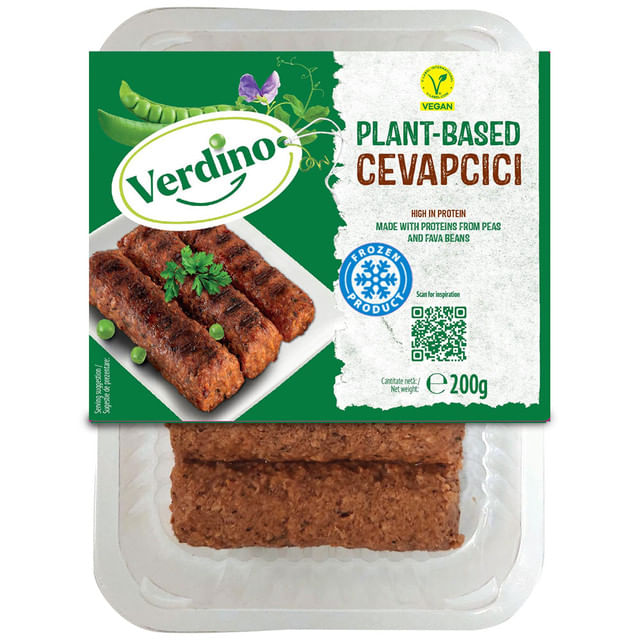 Produs vegetal pe baza de proteine din mazare si bob, alternativa la mici. Produs congelat.