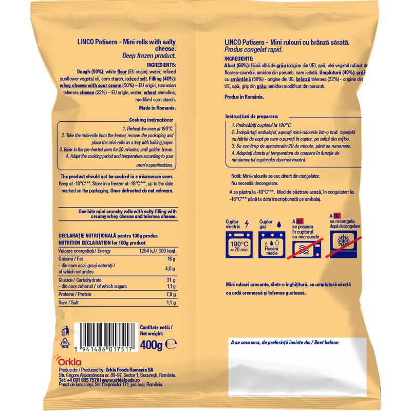 CongelateSemipreparate sarateMancaruri semipreparateMini rulouri cu branza sarata Linco, 400 g