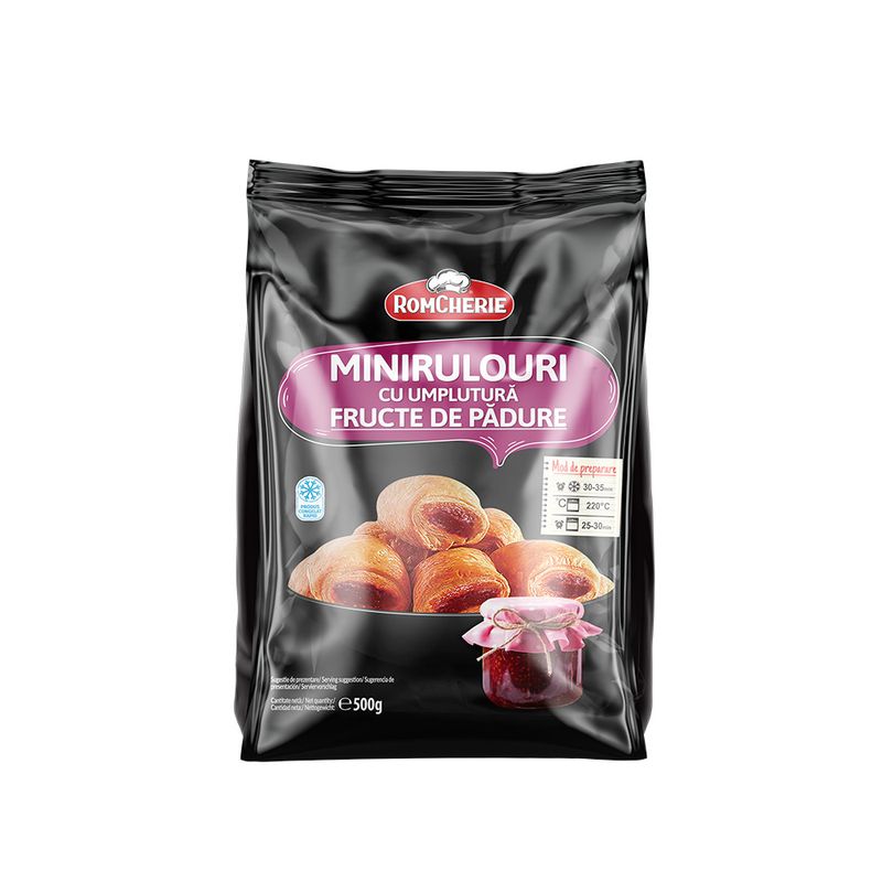 Aluat: faina alba de grau, apa, margarina (uleiuri vegetale si grasimi vegetale rafinate (palmier, floarea soarelui, rapita), apa, emulgatori (lecitina din soia, mono- si digliceride ale acizilor grasi), sare iodata, acidifiant (acid citric), conservanti (acid sorbic, sorbat de potasiu), antioxidant (alfa-tocoferol), colorant (caroten), aroma), grasime vegetala de palmier, sare iodata, zahar, otet de alcool, gluten, dextroza, stabilizatori (carboximetilceluloza, faina de guar), emulgatori (E 472e, lecitina de rapita), antiaglomerant (fosfat de calciu), faina de soia, agent de tratare a fainii (acid ascorbic), enzime. Umplutura fructe de padure 30%: apa, zahar, amidon modificat, suc din concentrat de fructe 4% (coacaze negre, capsuni, visine, zmeura, afine – in proportii variabile), sirop de glucoza, dextroza, proteina din lapte, lapte praf integral, grasime vegetala de palmier, stabilizatori (celuloza, carboximetilceluloza, alginat de sodiu, sulfat de calciu, difosfat tetrasodic), sare iodata, concentrate cu rol de colorare (hibiscus, morcov), coloranti (rosu sfecla, caroten, riboflavina), acidifiant (acid citric), arome.