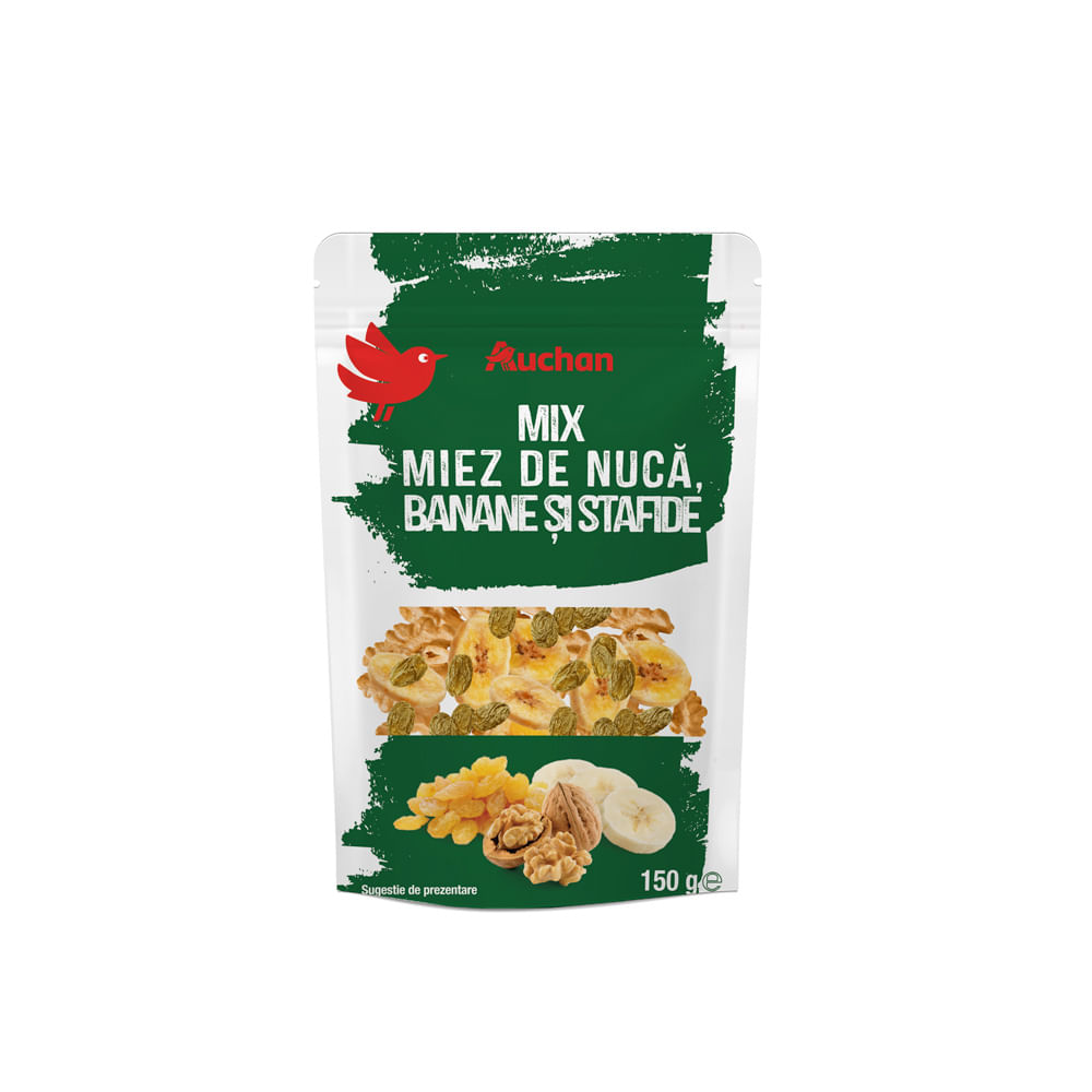 Mix de miez de nuca, banane si stafide Auchan, 150 g - Comanda online acum