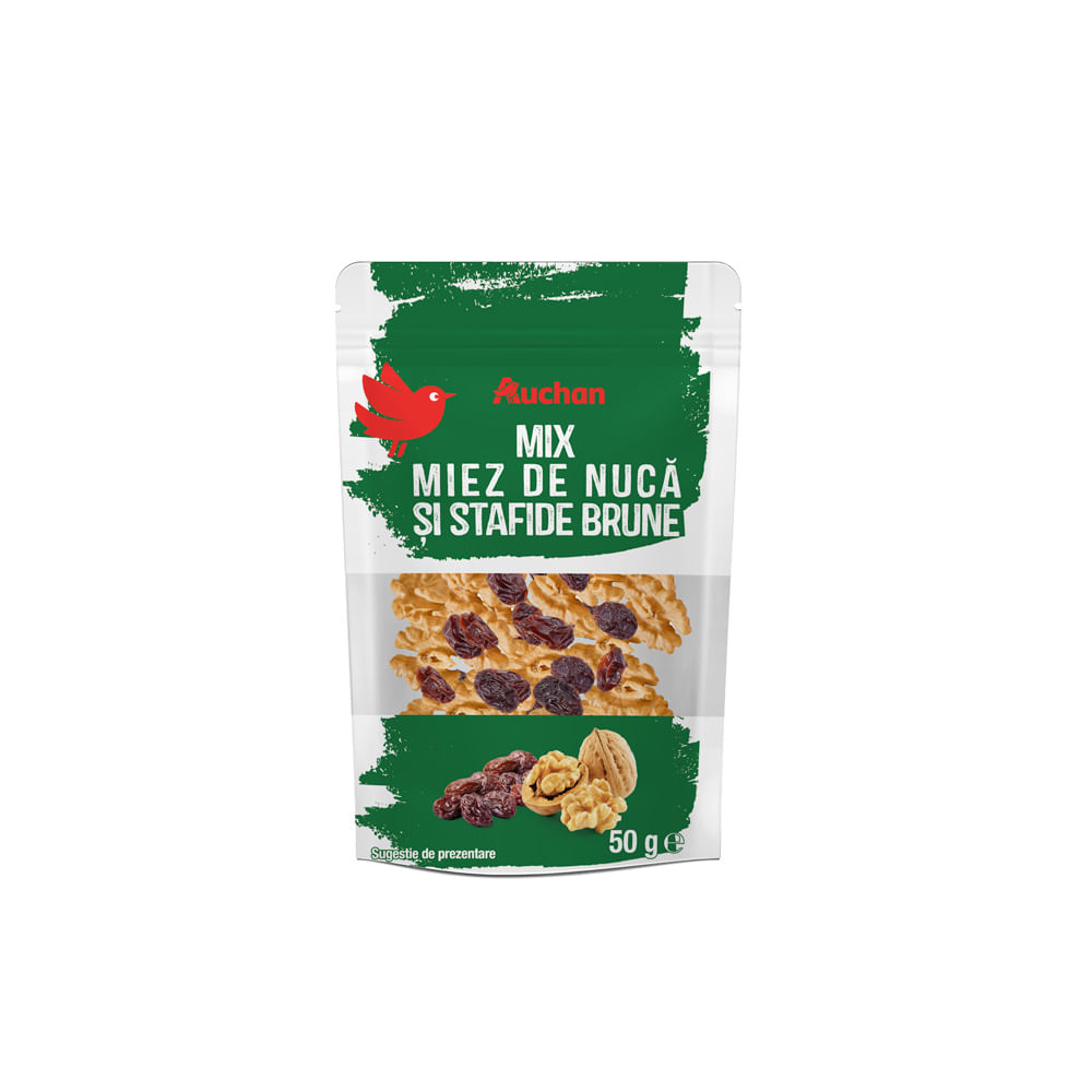 Mix de nuca si stafide brune Auchan, 50 g Mix de nuca si stafide brune Auchan, 50 g