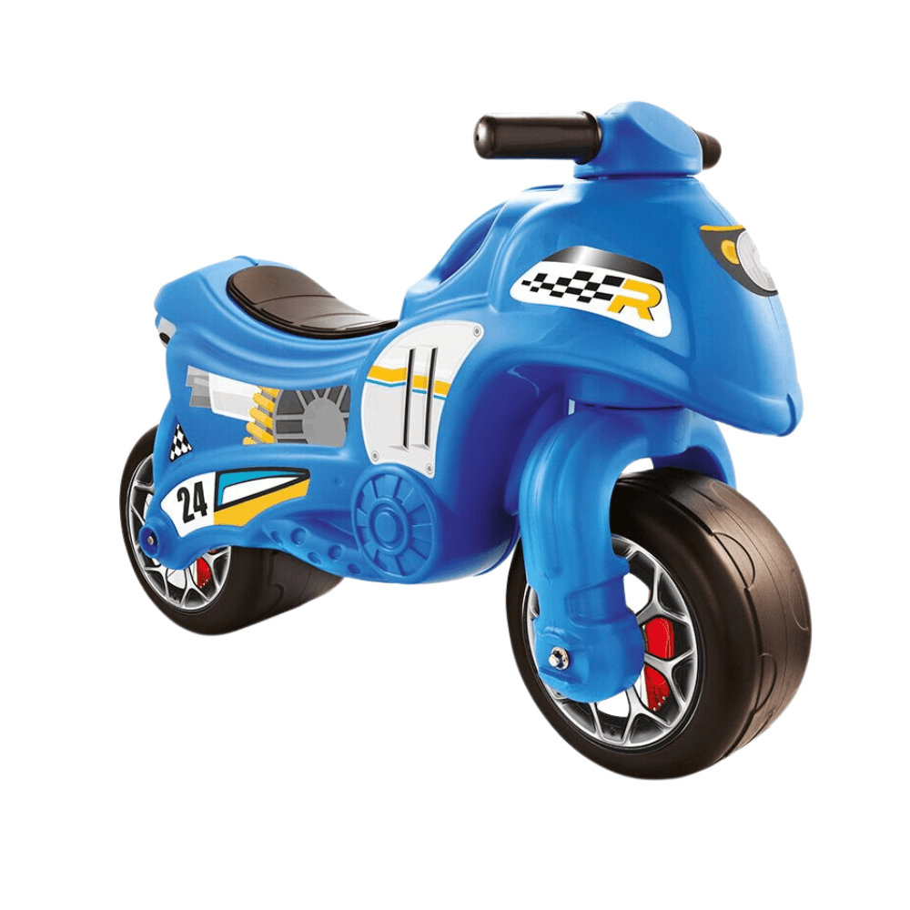 Caracteristici: roti dure, rezistente pentru toate tipurile de teren, inclusiv pentru nisip suporta o greutate de pana la 25 kg realizata din plastic rezistent aceasta motocicleta pentru copii este eleganta si futuristica contribuie la dezvoltarea coordonarii copilului dumneavoastra la o varsta frageda