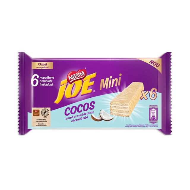 Napolitane Joe Mini cu crema de cocos, 78 g Napolitane Joe Mini cu crema de cocos, 78 g