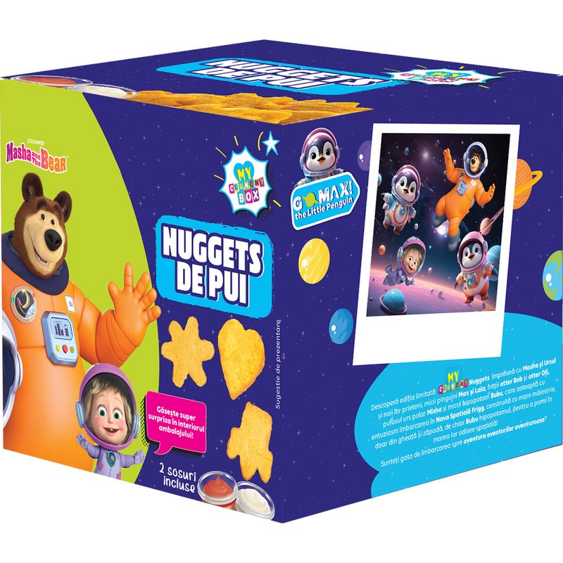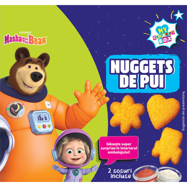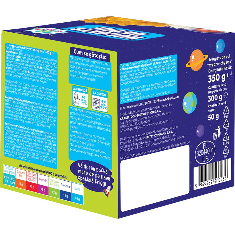 Sos dulce-acrisor (25 g): apa, zahar, caise in marinata (caise, apa, zahar, regulator de aciditate: acid citric), otet, amidon modificat, sare, ulei de rapita, condimente, extract de malt de orz, stabilizator: guma xantan, regulator de aciditate: acid citric, arome de piper.
