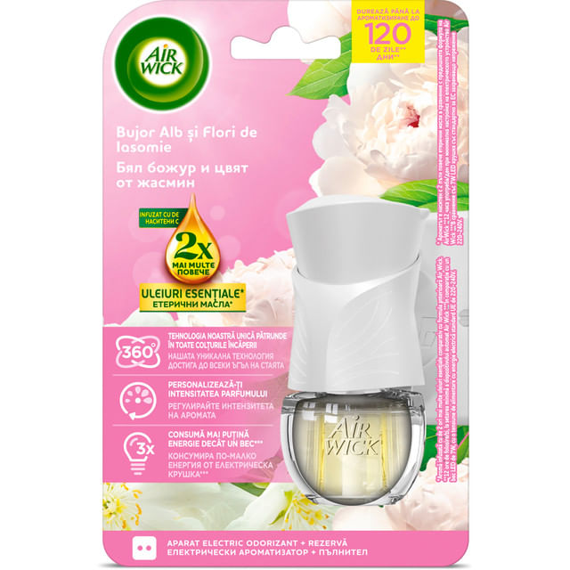 Odorizant electric Air Wick, bujor alb si flori de iasomie, 19 ml - Comanda online acum