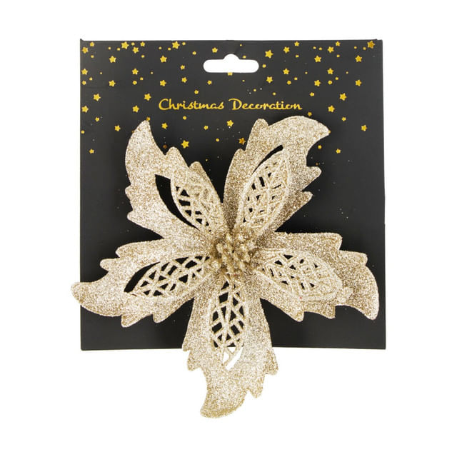 Ornament pentru brad floare cu clips cu sclipici, 16 cm - Comanda online acum