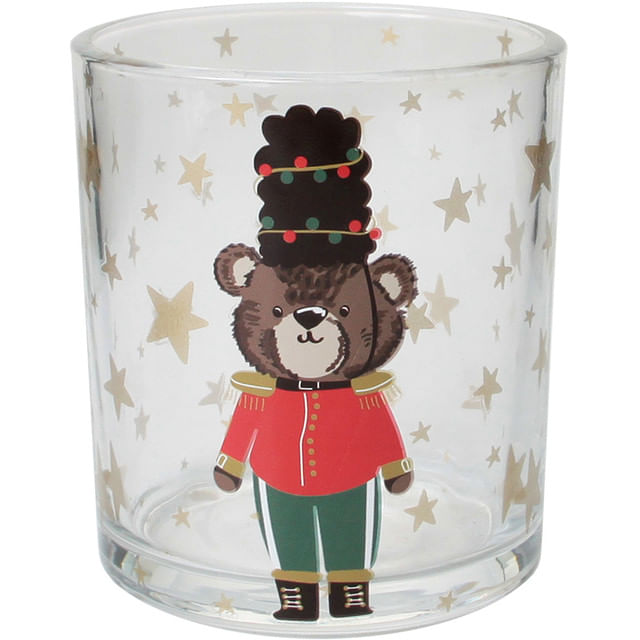 Pahar din sticla Actuel cu decor urs, perfect pentru bauturile reci de iarna.