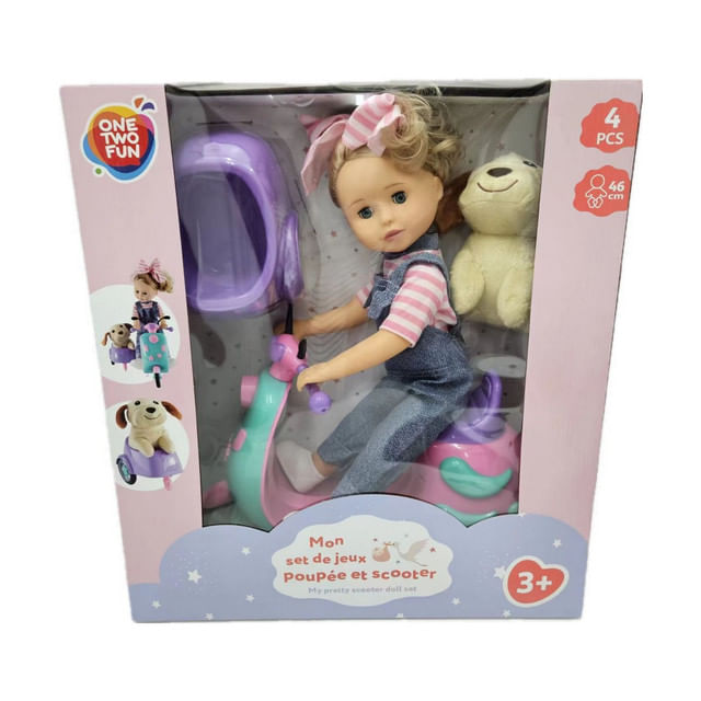 Papusa pe scooter One Two Fun, 46 cm, 4 piese - Comanda online acum