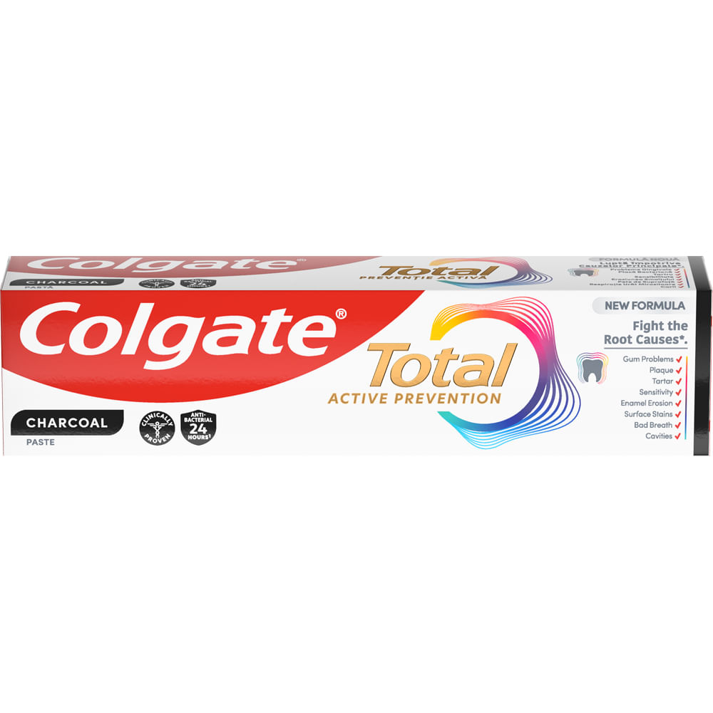 Pasta de dinti Colgate Total Charcoal and Clean, cu formula sa unica ce dispune de micro-particule de carbune, ofera o curatare in profunzime si protejeaza impotriva bacteriilor pana la 12 ore.