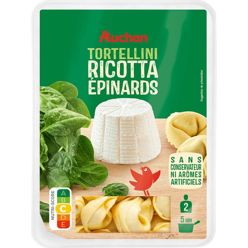 Umplutura 45%: branza Ricotta (zer, lapte, smantana (lapte, sare) 13,5%), spanac 10,8%, pesmet (faina de grau moale, apa, sare, drojdie), smantana usoara (lapte), fulgi de cartofi (cartofi, emulsifiant: mono- si digliceride ale acizilor grasi, uleiuri vegetale (ulei de florea soarelui, ulei de rapita), zer pudra, lactoza (lapte), sare, arome naturale (lapte, grau), zahar, pudra de usturoi, ceapa prajita deshidratata, chives, nucsoara.