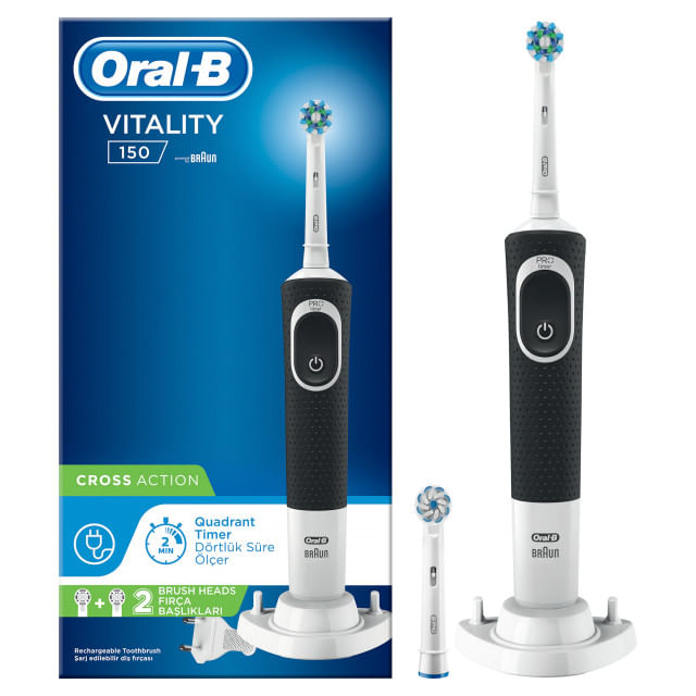 Periuta de dinti electrica Oral-B Vitality D100 Cross Action, 7600 Oscilatii/min, Curatare 2D, 1 program, 2 capate, Culoarea Negru - Comanda online acum