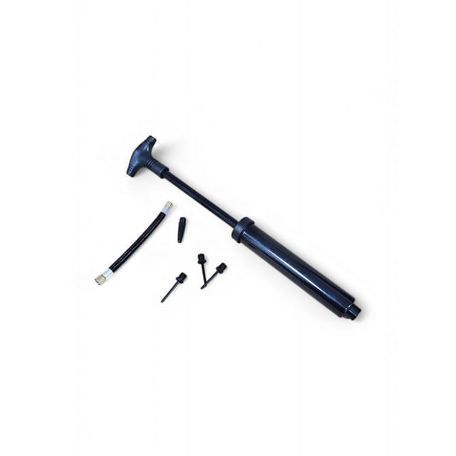 Pompa pentru umflat mingii/velo. Contine un furtun de 12,5 cm , 3 ace si o valva din plastic.