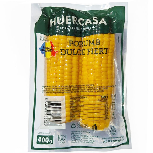 Porumb dulce fiert Huercasa, 2 bucati, 400 g Porumb dulce fiert Huercasa, 2 bucati, 400 g