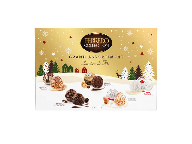 Ferrero Rocher: : ciocolata cu LAPTE 30% (zahar, unt de cacao, masa de cacao, LAPTE praf degresat, UNT deshidratat, emulgator: lecitina (SOIA); vanilina), ALUNE DE PADURE (28,5%), zahar, ulei de palmier, faina de GRAU, ZER praf, cacao degresata pudra, emulgator: lecitina (SOIA); agent de afanare (bicarbonat de sodiu), sare, vanilina. Ferrero Rondnoir: ciocolata amaruie 40,5% (zahar, masa de cacao, unt de cacao, emulgator: lecitina (SOIA); vanilina), zahar, ulei de palmier, faina de GRAU, cacao degresata pudra (5,5%), ZER praf, LAPTE praf degresat, amidon de GRAU, ulei de floarea-soarelui, ciocolata cu LAPTE (zahar, unt de cacao, LAPTE praf, masa de cacao, emulgator: lecitina (SOIA), vanilina); unt de cacao, emulgator: lecitina (SOIA), proteine din LAPTE, agent de glazurare (guma arabica), masa de cacao, agenti de afanare (bicarbonat de sodiu, bicarbonat de amoniu), sare, vanilina.