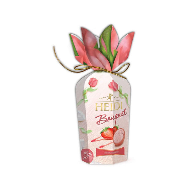 Praline de ciocolata cu umplutura cu crema cu capsuni Heidi Bouquet Flower, 120 g - Comanda online acum