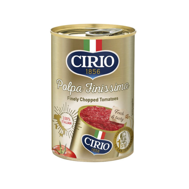 Pulpa de rosii super fina Cirio 400g este obtinuta din cele mai bune rosii italiene, cultivate sub soarele delicios al Italiei si recoltate la maturitate maxima. Printr-un proces delicat de pasare si filtrare, se obtine o pulpa catifelata, cu o consistenta uniforma si o aroma bogata, proaspata si natural dulce. Aceasta pulpa de rosii super fina este ideala pentru prepararea rapida a celor mai gustoase sosuri pentru paste, pizza, supe, tocanite sau retete mediteraneene, oferind gustul autentic italian intr-un format practic. Fara conservanti, coloranti sau aditivi – doar rosii 100% naturale. Ambalata in cutie metalica de 400g, perfecta pentru uz casnic sau profesional.