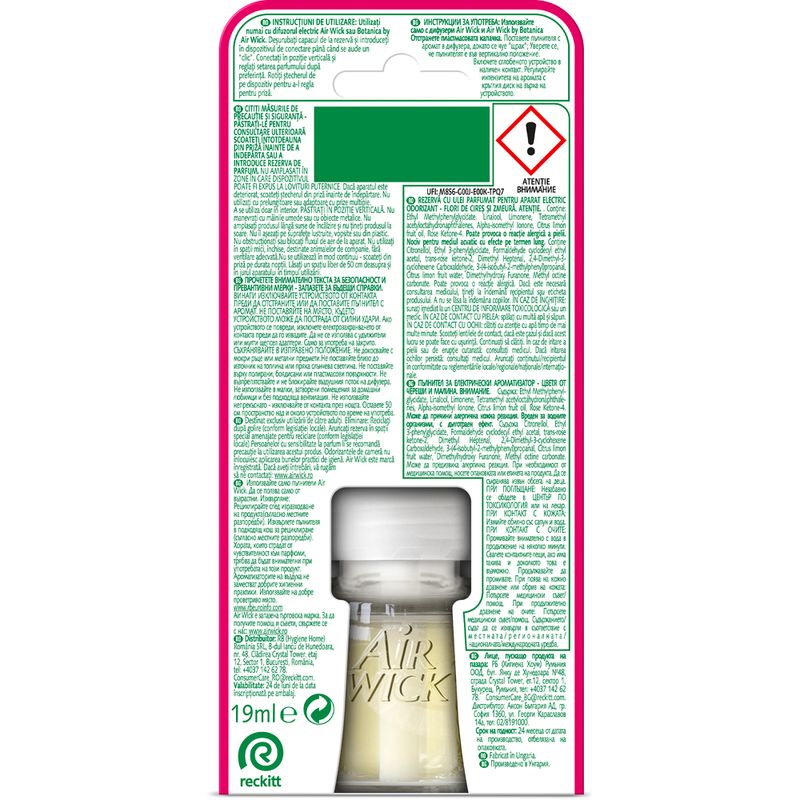Rezerva odorizant camera electric Air Wick, flori de cires si zmeura, 19 ml - Comanda online acum