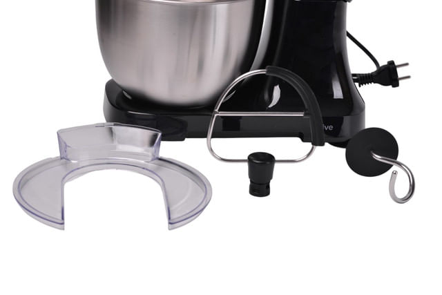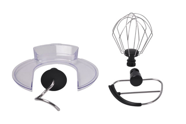 Robotul vine echipat cu accesorii esentiale: paleta plata, carlig de framantare si tel, toate in culoarea neagra, perfecte pentru mixarea, framantarea sau baterea ingredientelor in functie de necesitate.