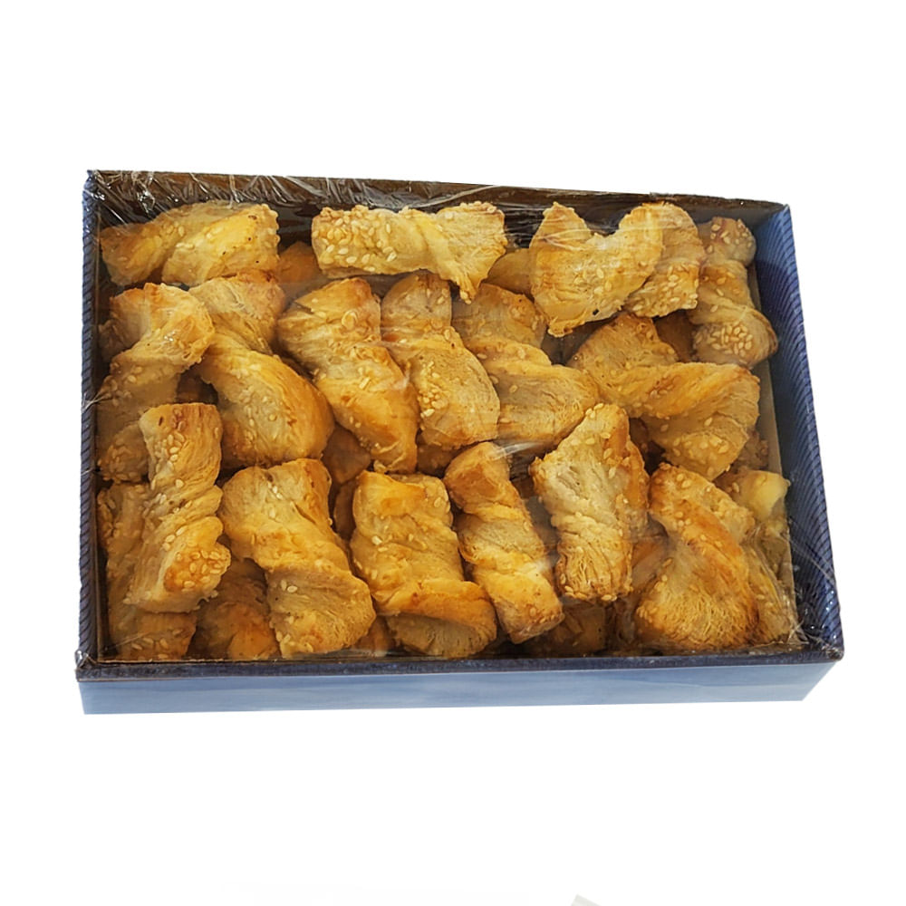 Faina alba de grau 480, apa, sare iodata, otet, grasimi vegetale hidrogenate, seminte de susan alb si negru.