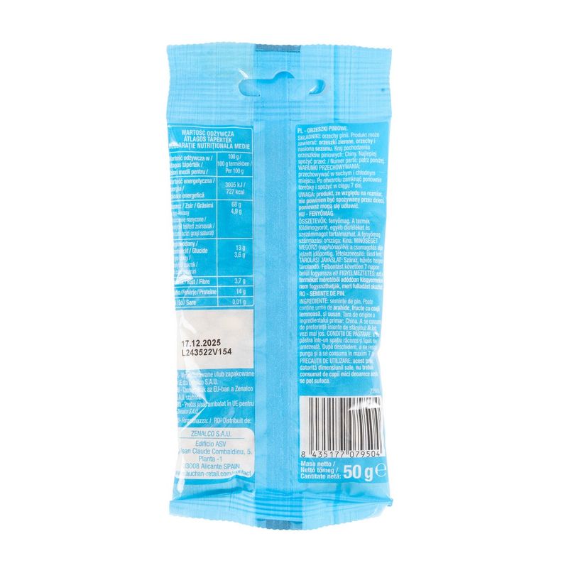 Seminte de pin Auchan, 50 g. Poate contine urme de fructe cu coaja lemnoasa.