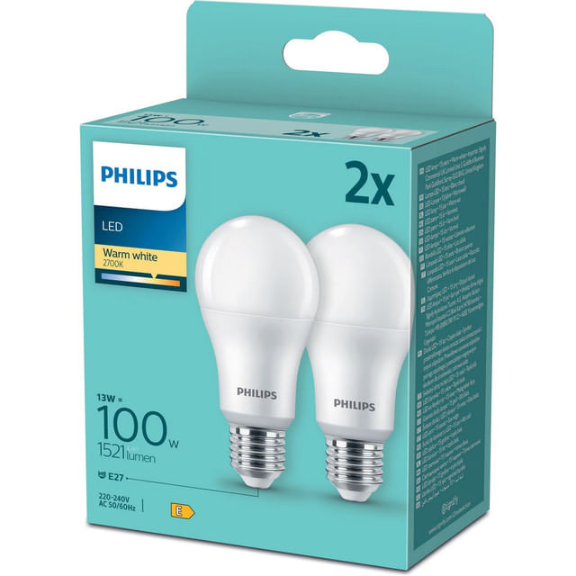 Set 2 becuri LED Philips, 100W, E27, 2700 K, 1521 lm, lumina calda Set 2 becuri LED Philips, 100W, E27, 2700 K, 1521 lm, lumina calda